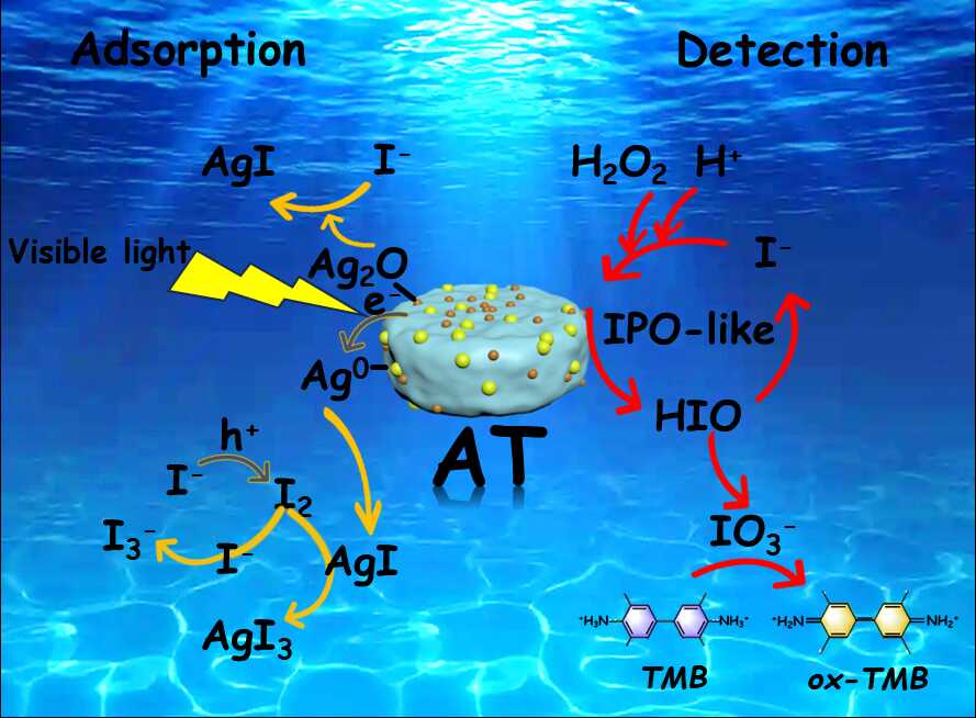 Experimental results show that the nanocomposite delivers effective iodine adsorption and maintains stable removal performance even at low iodide concentrations. The treated water meets national surface water environmental standards. The material also exhibits iodoperoxidase-like activity, enabling a colorimetric sensing system based on AT/TMB/H₂O₂ for visual detection of iodide ions. The system shows good resistance to interference from common anions and performs reliably in complex water environments, including seawater and nuclear wastewater.